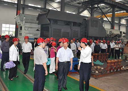 喬經理首先代表集團公司對中青班各位領導的光臨表示了熱烈的歡迎,對公司發展、工業園運營、產品生產等進行了具體詳細的講解。在稍后的工業園巡查過程中,向考察組一行系統介紹了公司在礦石破碎和人工制砂成套工藝的技術優勢,以及公司在超細粉加工、電廠脫硫石灰石磨粉、超壓梯形磨粉機節能環保設備研發領域的節能降耗、市場開發等情況,現場詳細解答了考察組提出的各種問題。